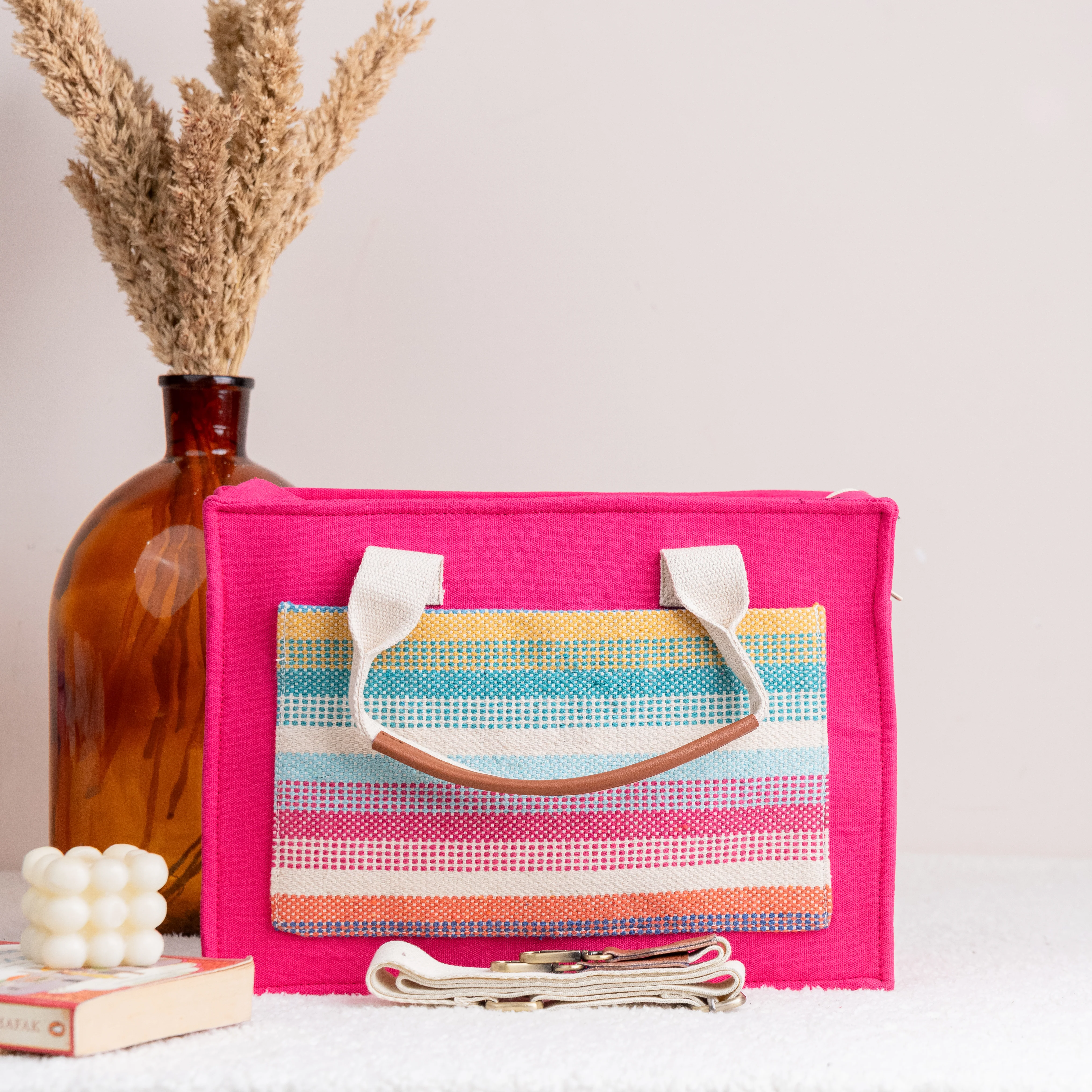 Our canvas tote bags are designed to be versatile, your go-to bag for all your daily needs. The blend of cotton slub and jacquard detailing gives them a unique, stylish edge. It can comfortably fit laptops up to 16 inches. Plus, they're spacious enough to carry all your essentials with ease.
