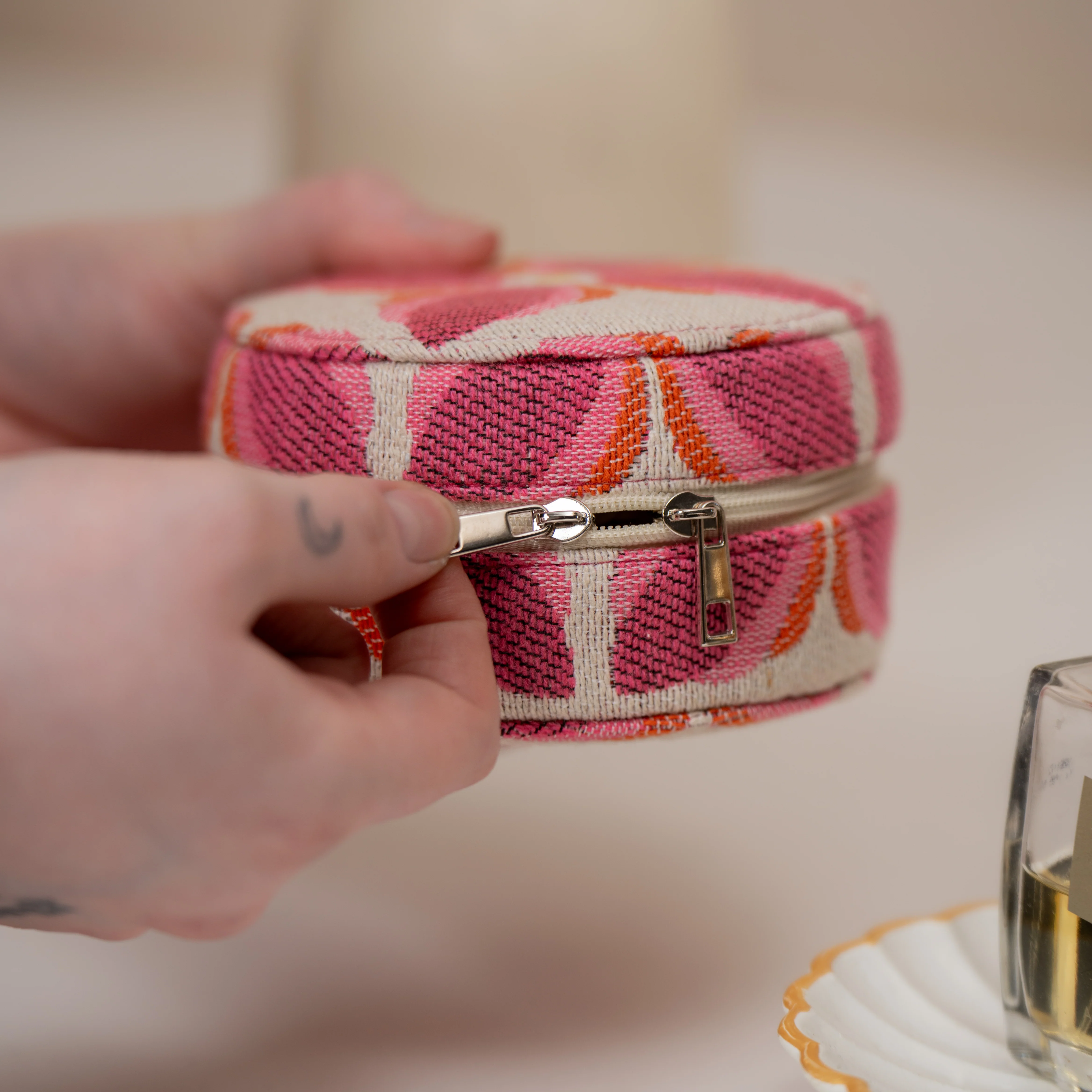 Crafted with a soft interior lining that’s gentle on delicate pieces, each box is wrapped in premium, sturdy material and comes in four beautiful signature prints. Built for travel but perfect for everyday use too.