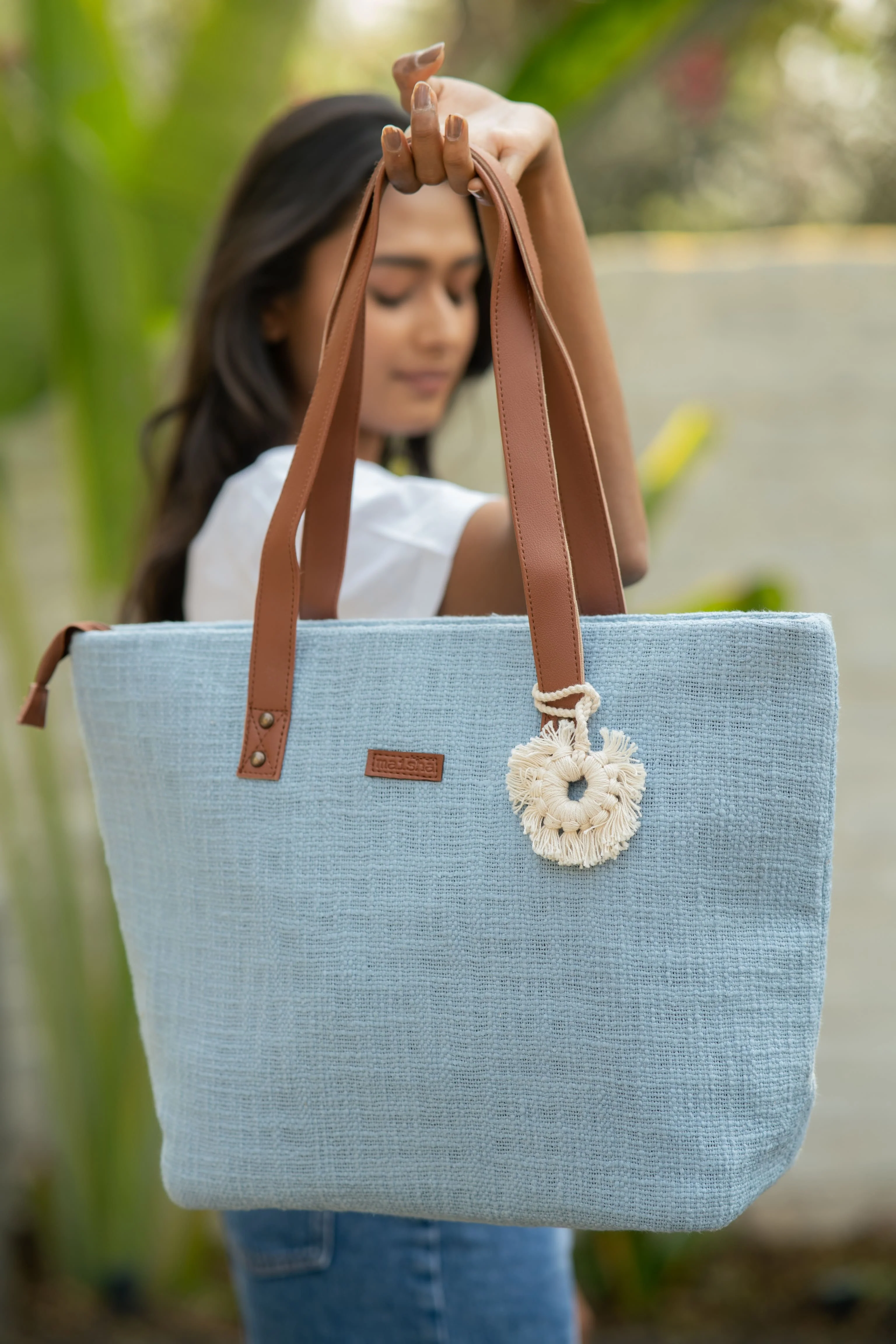 Meet our new everyday totes - this cotton jacquard handmade tote bag is created using highly textured cotton slub fabric with patterns that are woven making it look elegant yet simple. Carry them along with you on your travel holidays or as your everyday essential bag. The main compartment is secured by a zippered closure & a separate laptop compartment to secure your laptop essentially along with ample space to store your everyday essentials. It has 2 open and one zipped pocket inside the main compartment & an added zippered pocket on the outside for easy retrieval. Fits devices up to 16", keeping them secure. The vegan leather handles add to the elegance of the bag. Make them your everyday companion.