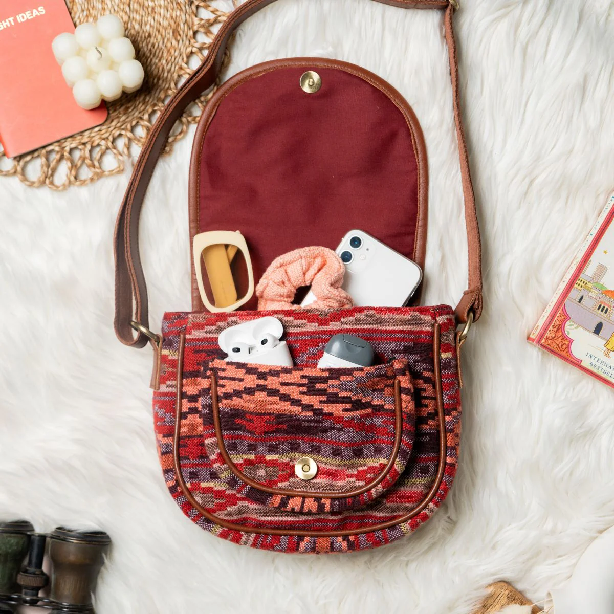 Meet our new conductor sling bags: they are freshly woven, extremely spacious and come with multiple compartments. Adorned with a beautiful woven jacquard flap secured by a magnet button, a zippered front pocket along with a significantly spacious main compartment with a zippered partition and a furthe pocket secured by a zip for easy access to your phone and keys. Our new collection of conductor slings is made in a combination os cotton jacquard and cotton slub, making them not only aesthetically pleasing but also eco friendly in nature.